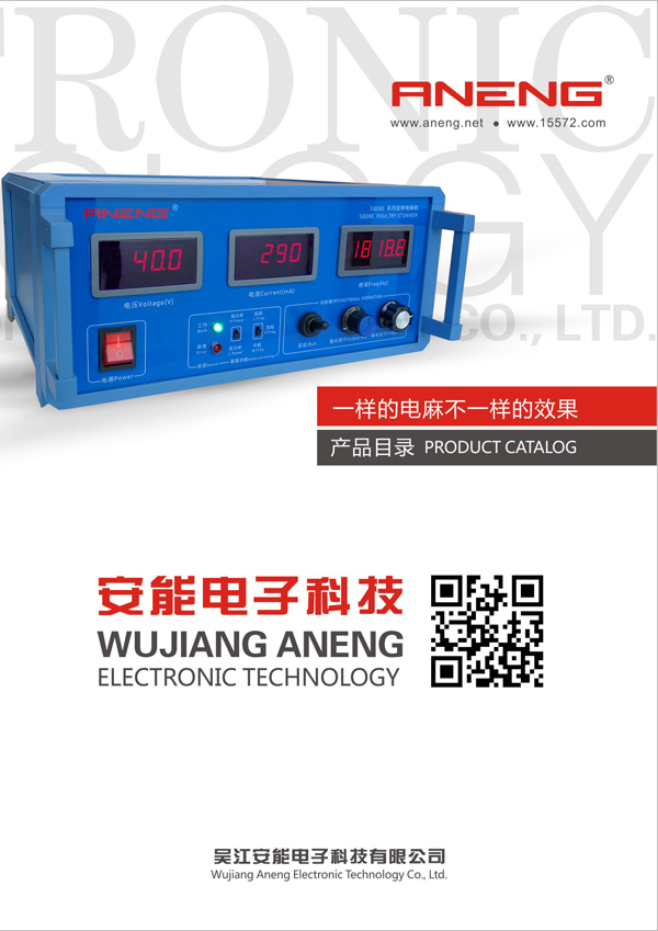 Aneng electrical stunning device is suitable for slaughtering assembly line operation and water bath electric stunning tank; it can quickly and effectively cause stunning, reduce broken wings and blood stasis, and is conducive to improving slaughtering efficiency and meat quality!